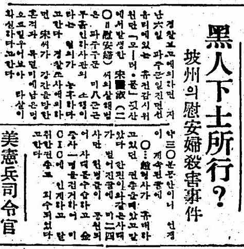 | 1957.5.1 東亜日報「黒人下士所行? 坡州の慰安婦殺害事件」 |