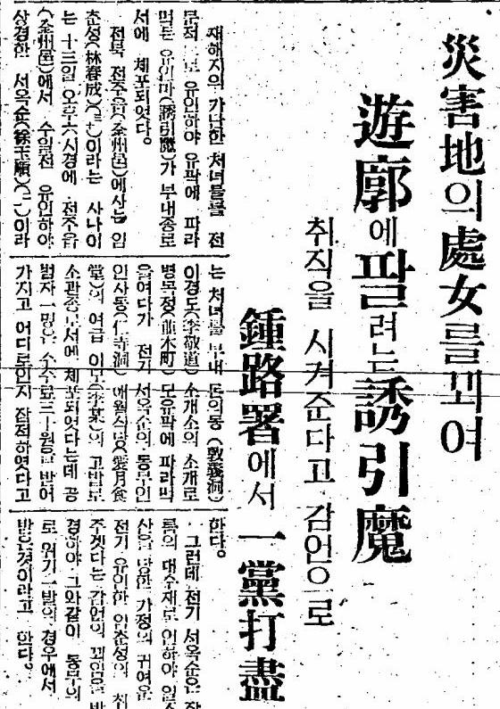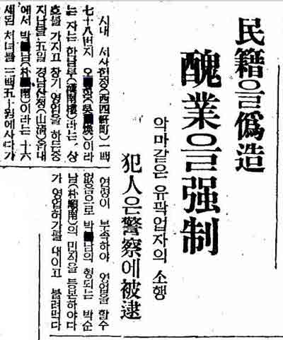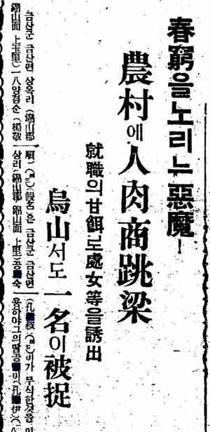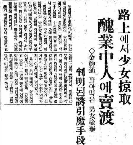 元・従軍慰安婦の証言には「工場で働かせる」等と騙されて慰安婦になったケースが多いですが、以下の記事の通り、当時の朝鮮半島では誘拐・詐欺等の方法で人身売買したり売春業を強いる輩が横行していたようです。